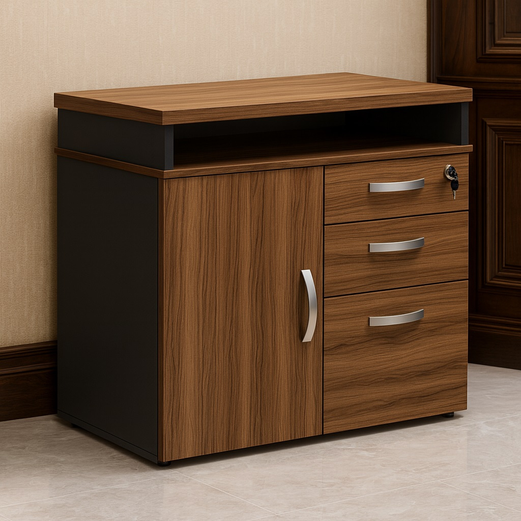 Armário Baixo 3 Gavetas e 1 Porta (MISTO) – MARANELLO – NOGAL/PRETO – 1217