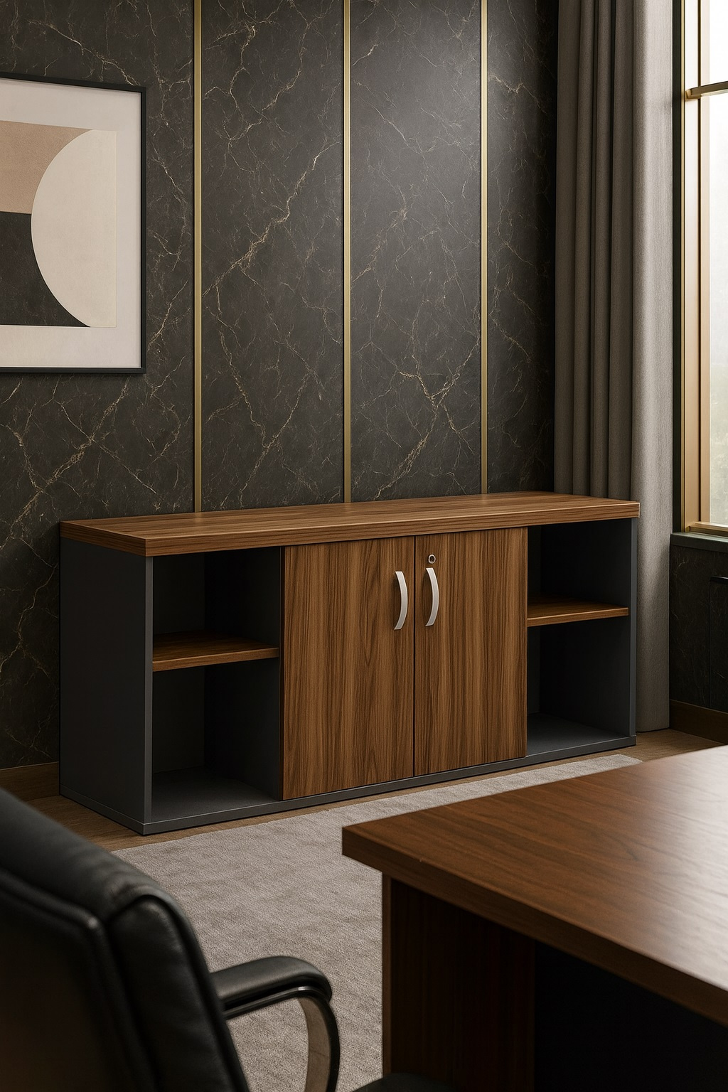 O Armário de Escritório Maranello M40 Baixo une elegância, funcionalidade e durabilidade em um só móvel. Ideal para escritórios, recepções e ambientes corporativos, ele ajuda a manter tudo organizado com um visual moderno e sofisticado.