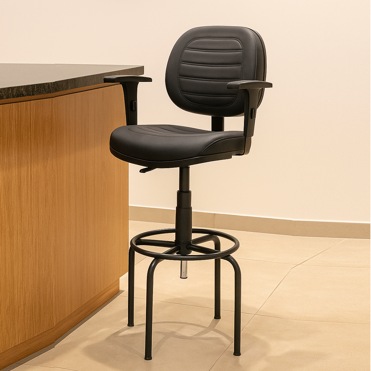 Cadeira Caixa Executiva Costurada Braço Regulável – (Aranha MARTIFLEX) – Cor Preta