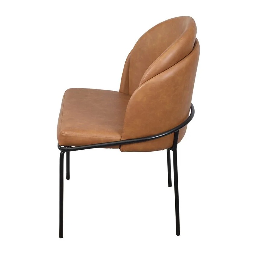 Produzida com estrutura metálica reforçada e pintura epóxi preta, a Denali oferece estabilidade e resistência para o uso diário. O assento e o encosto são revestidos em couro sintético de alta qualidade, na cor caramelo, garantindo conforto e fácil manutenção.