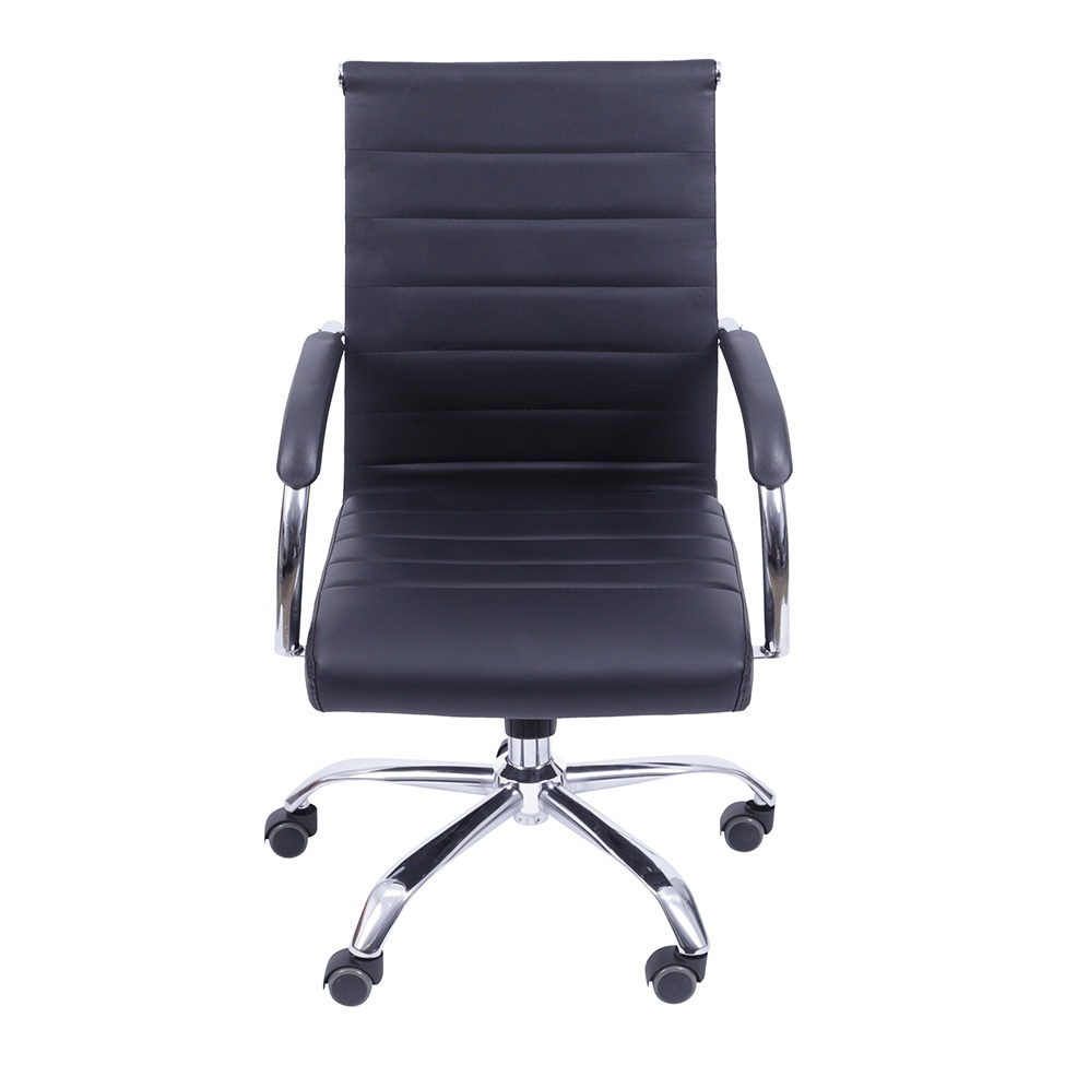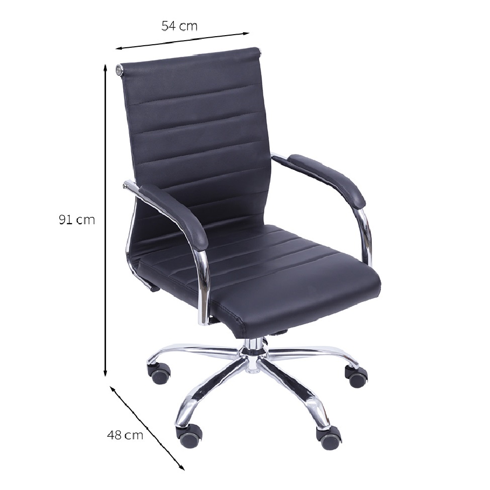 ✅ Presença marcante: o acabamento em couro sintético preto e a base cromada dão um toque moderno e elegante à sua sala de reunião.