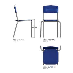 - Base do encosto em tubos de aço 3/4” com espessura de 0,90 mm