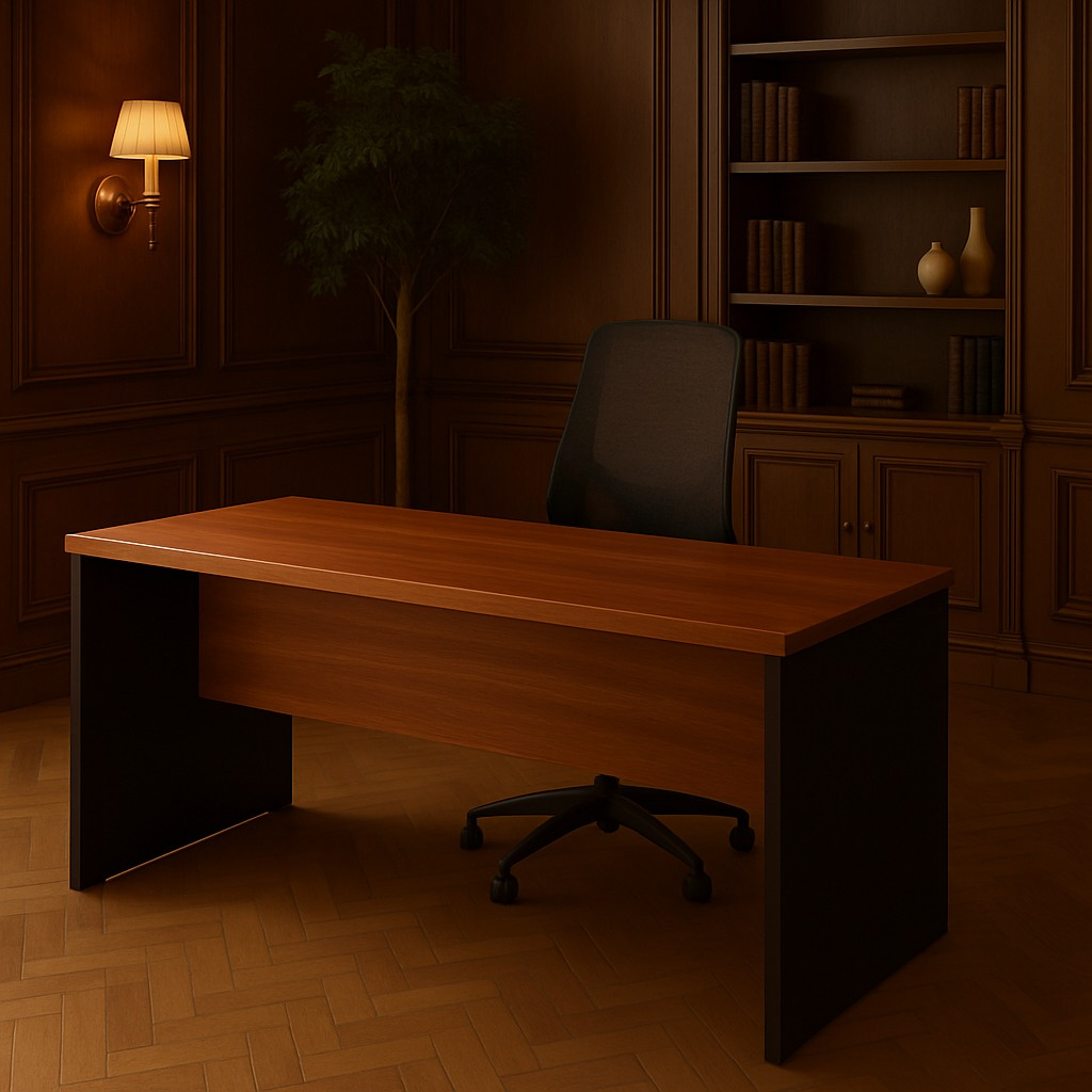 Com estrutura reforçada e tampo de 40mm encabeçado, oferece estabilidade e conforto no dia a dia de trabalho. Seu acabamento em tons amadeirados traz sofisticação e combina com diferentes estilos de ambiente.