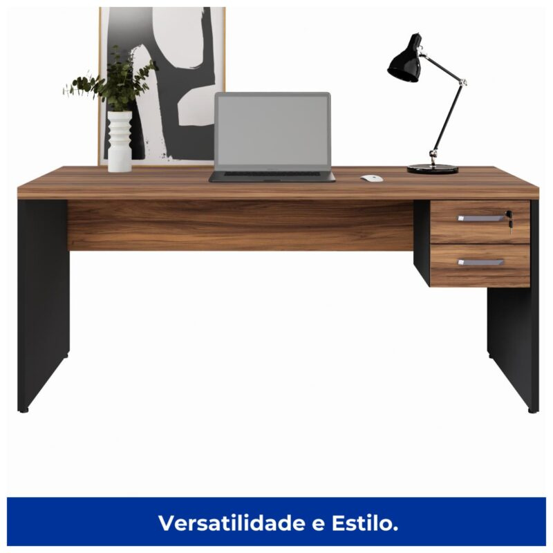 Mesa de Escritório 1,70×0,70m – 02 Gavetas – NOGAL SEVILHA/PRETO – 1906
