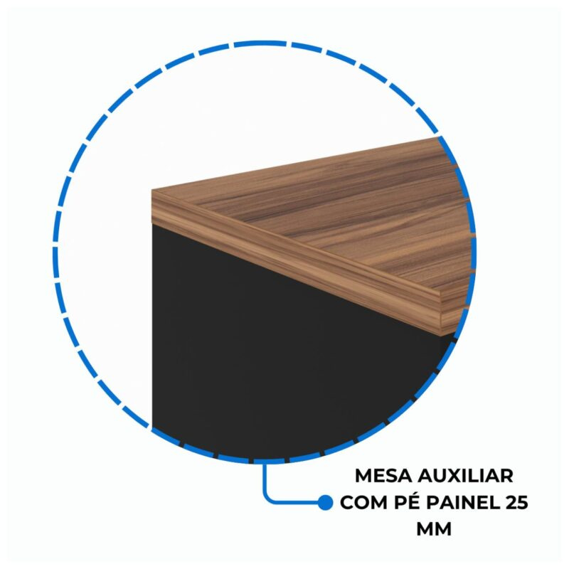 Mesa de Escritório em L (Mesa 1,50m + Mesa Auxiliar) – Sem Gavetas – NOGAL SEVILHA/PRETO – 1907