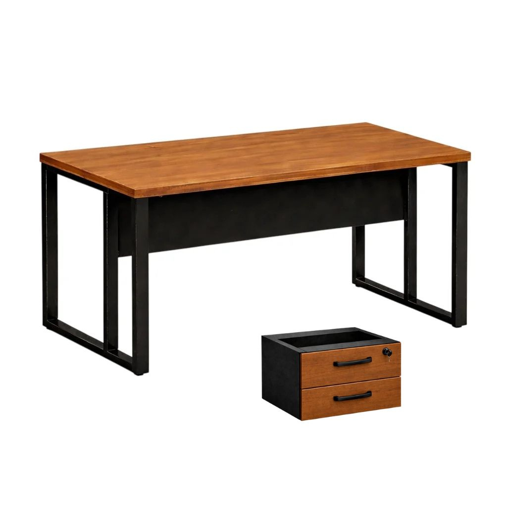 A Mesa de Escritório Maranello M40 chega com aquele visual moderno que combina super bem com qualquer ambiente corporativo ou home office. O tampo na cor Sevilha traz um toque quente e elegante, enquanto a estrutura com pés retangulares em aço garante firmeza, durabilidade e um visual industrial super atual.