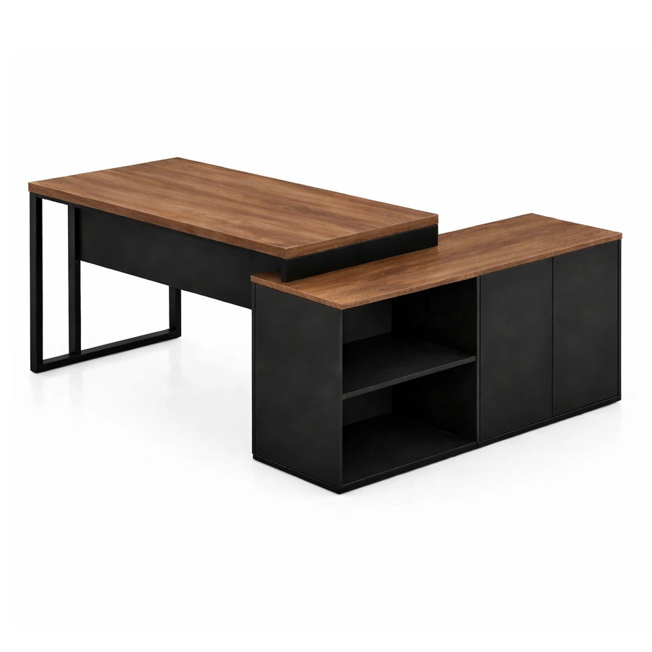 Mesa Diretorzinha c/ Aparador – Pé Retângular – 150×76,5- – NOGAL SEVILHA / PRETO – 1227