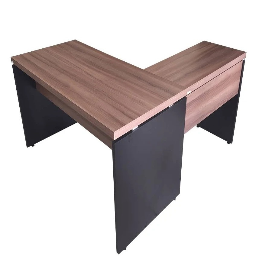 Produzida com tampo em MDP de alta resistência, com acabamento amadeirado, e estrutura metálica na cor preta, garantindo durabilidade, estabilidade e um visual elegante. O formato em L otimiza o aproveitamento do espaço, proporcionando maior conforto e produtividade.