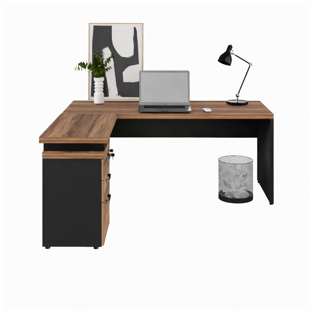 Conteúdo da Embalagem: Mesa Reta 1,50x60cm / Gaveteiro 03 Gavetas / Mesa auxiliar