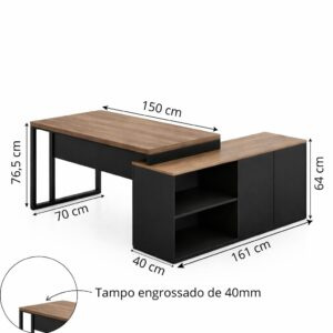 Mesa Diretorzinha c/ Aparador – Pé Retângular – 150×76,5- – SEVILHA / PRETO