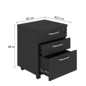 Gaveteiro Volante 03 Gav. 0,67×0,46×0,40m – Cor Preto – 1485