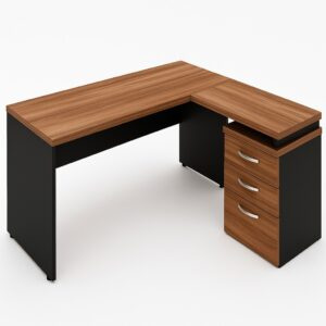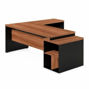 Mesa para Escritório em “L” com VIDRO FUMÊ – 1,92X1,60M NOGAL SEVILHA/PRETO – 1917